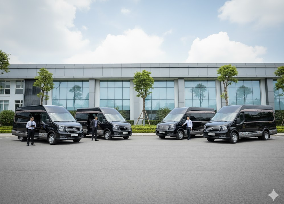 • Phục Vụ Chuẩn Mực: Xe được chuẩn bị ở tiêu chuẩn cao nhất (sạch, thơm, tiện nghi hoạt động hoàn hảo), đảm bảo hình ảnh doanh nghiệp luôn chuyên nghiệp.